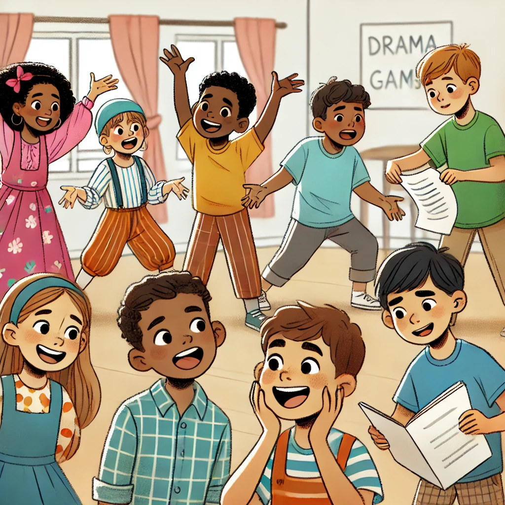 Our program is thoughtfully structured to appeal to each age group’s developmental needs. Younger children engage in playful, fairy-tale-based stories that spark imagination and laughter, while older students tackle relatable scenarios that foster empathy and personal reflection. Every class is a mix of fun, focus, and creative exploration, offering students a complete drama experience in a positive, inclusive atmosphere.